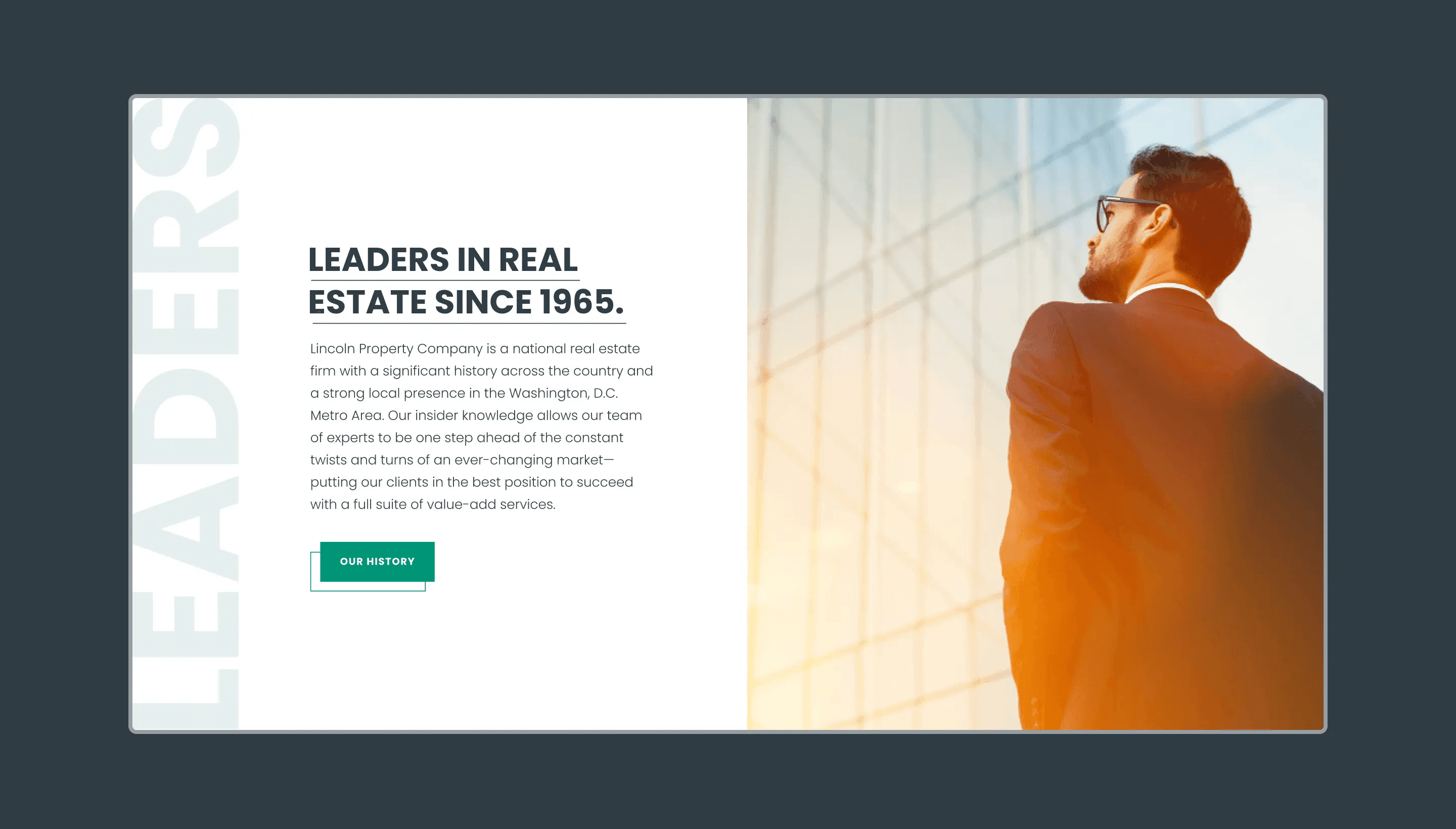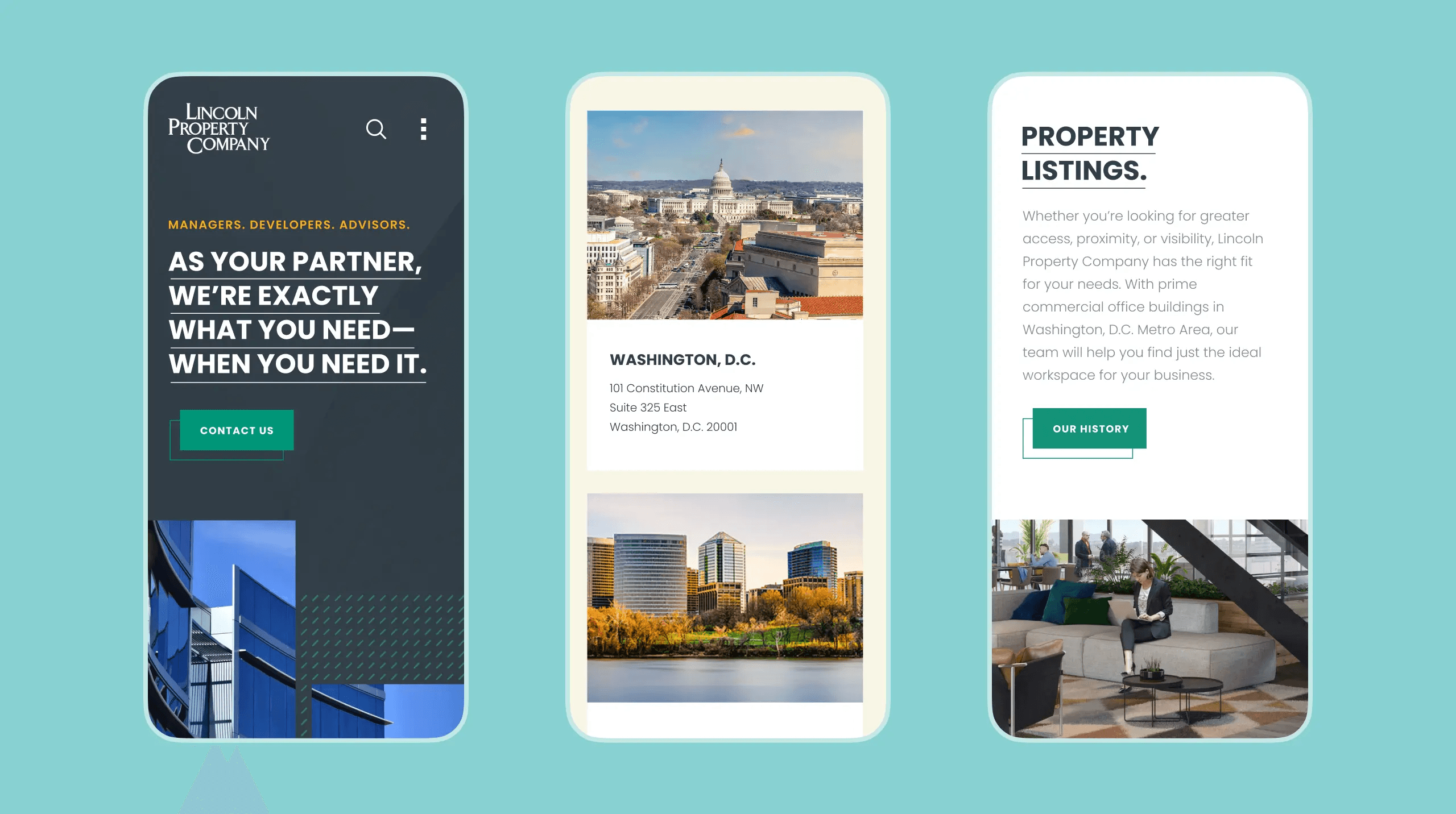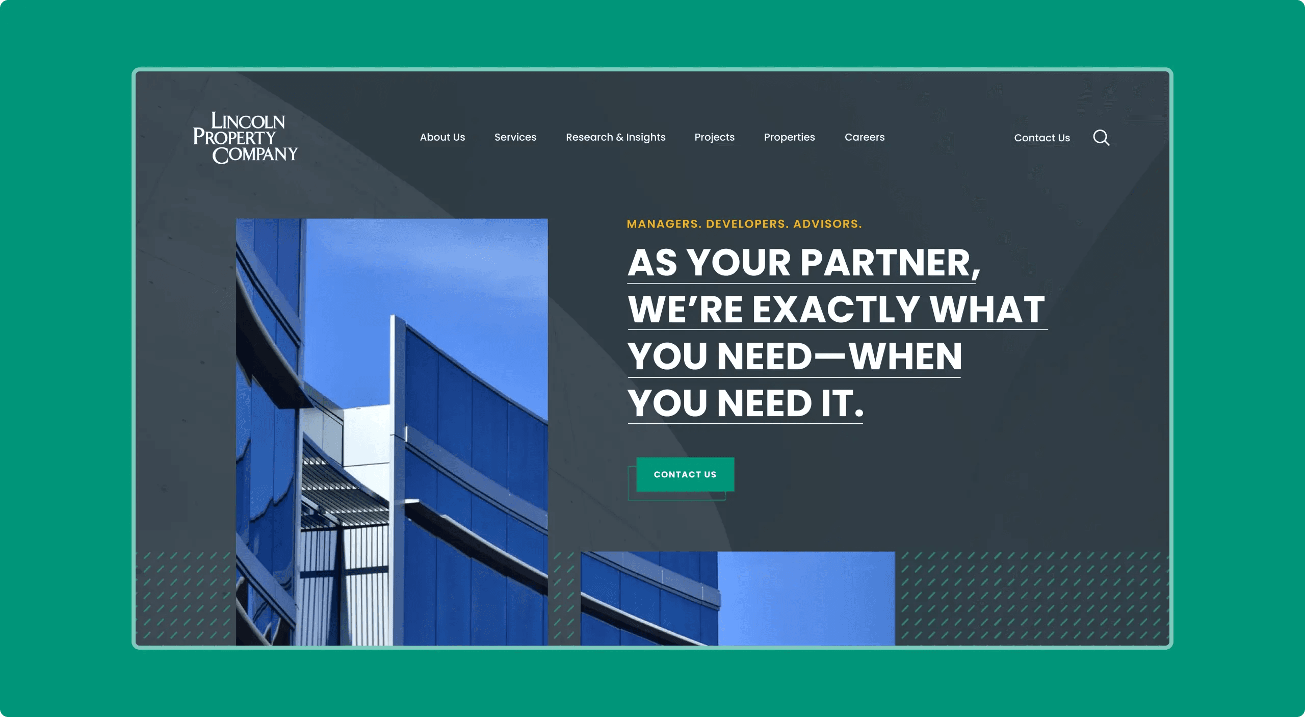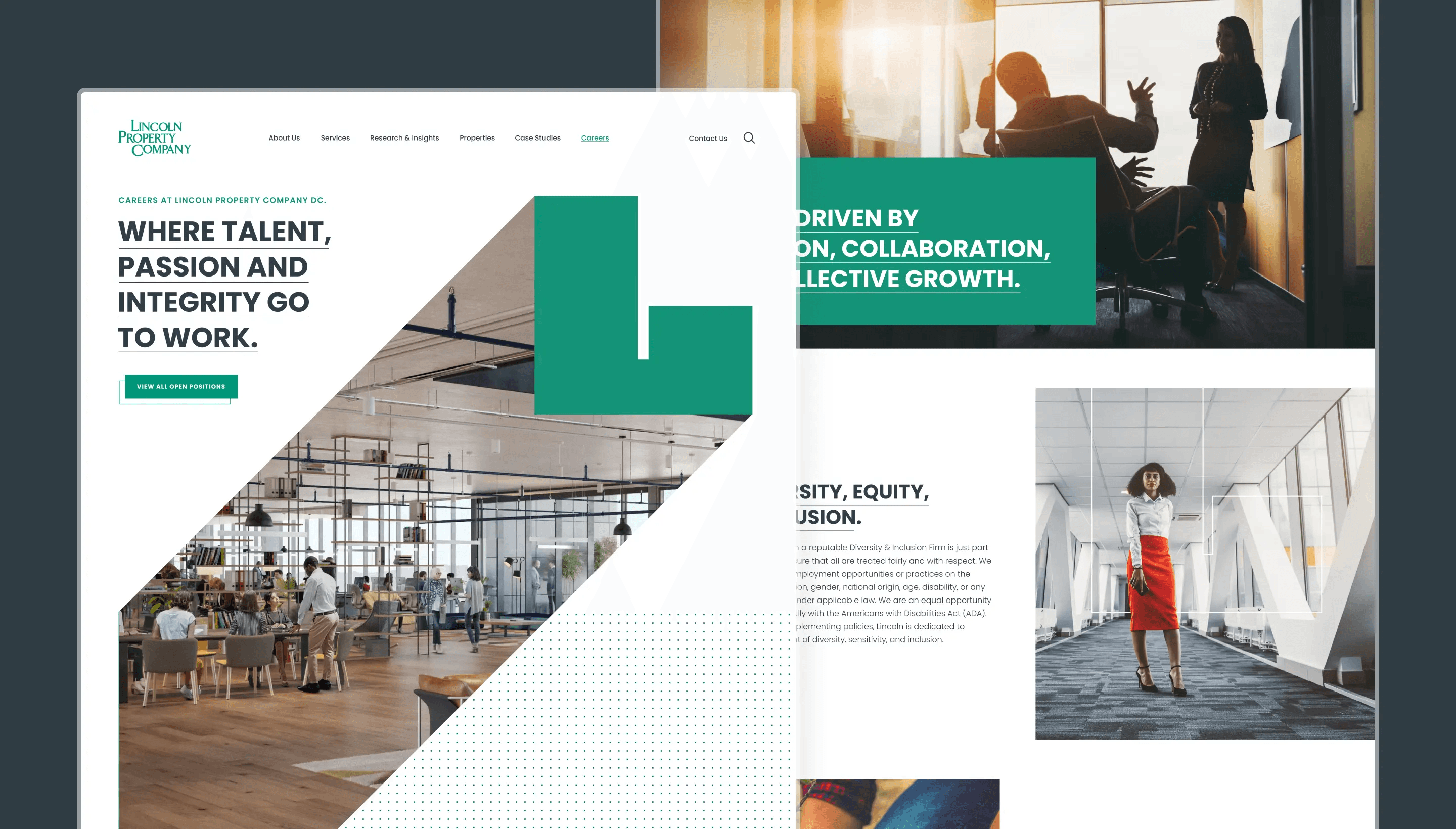 Leveraging the brilliant rebrand and design direction created by the talented team at Fovndry, we set out to design and develop an engaging website that would embody the essence of Lincoln Property Company’s new identity. The refreshed branding and designs provided a solid foundation to work with, inspiring us to craft a digital experience that would seamlessly align with LPC’s refined vision.