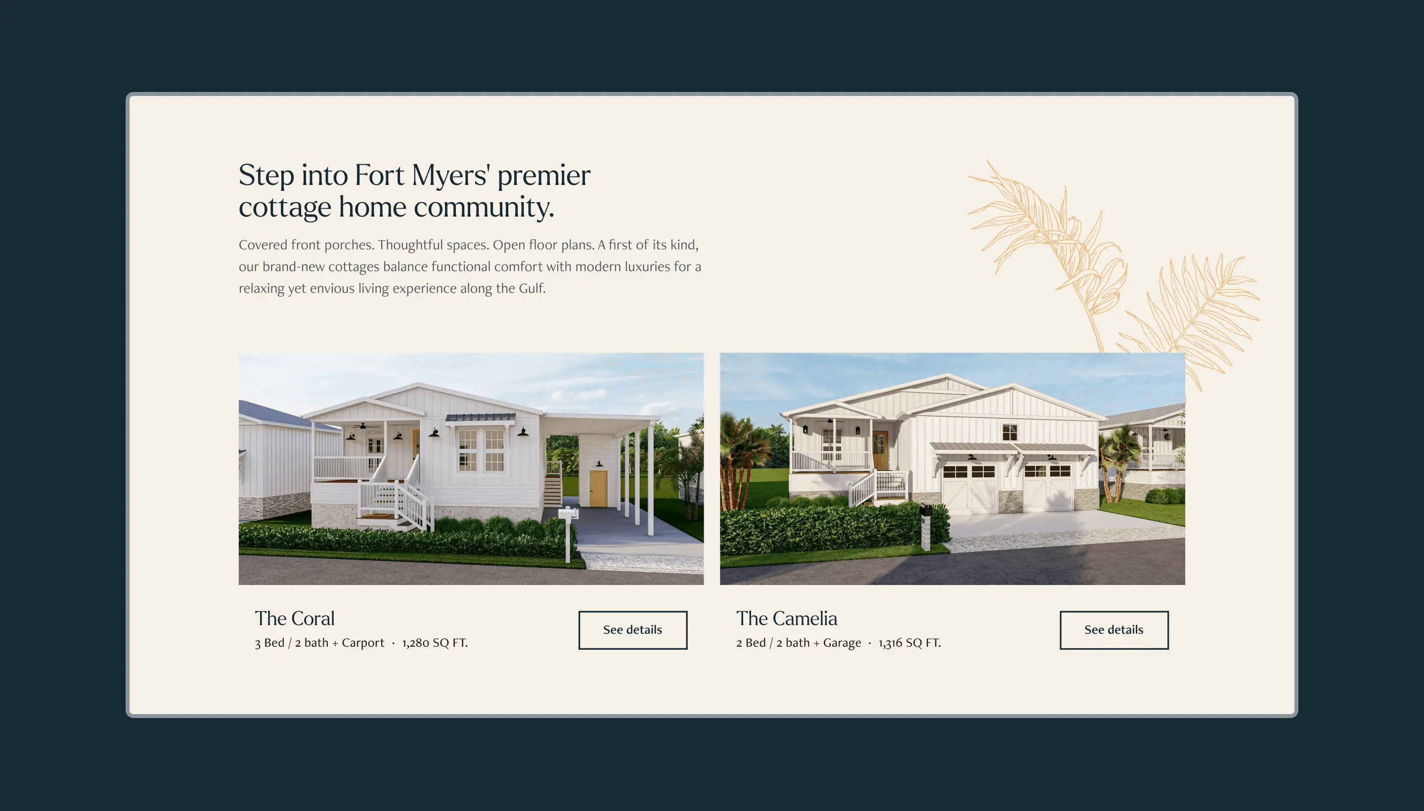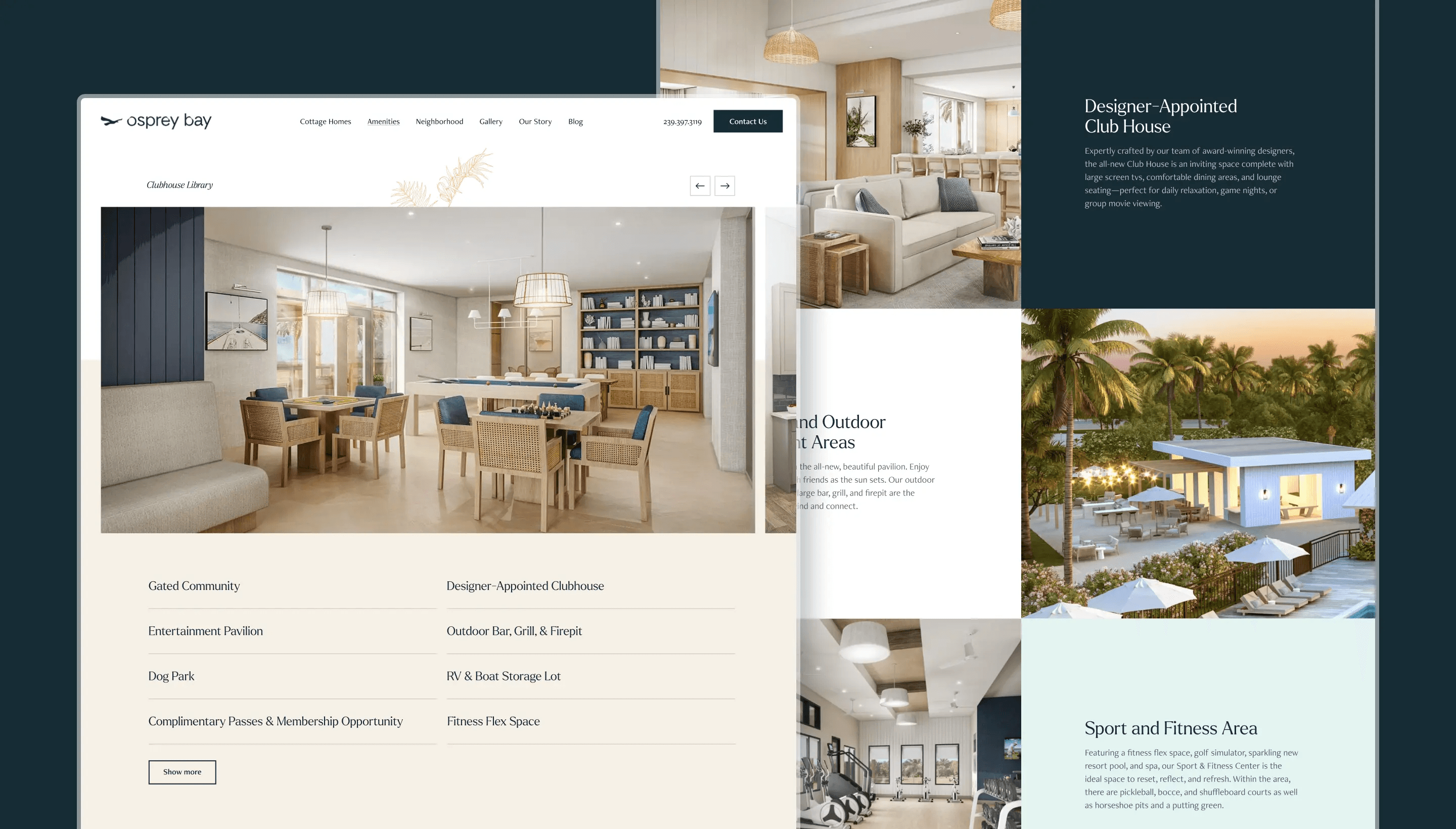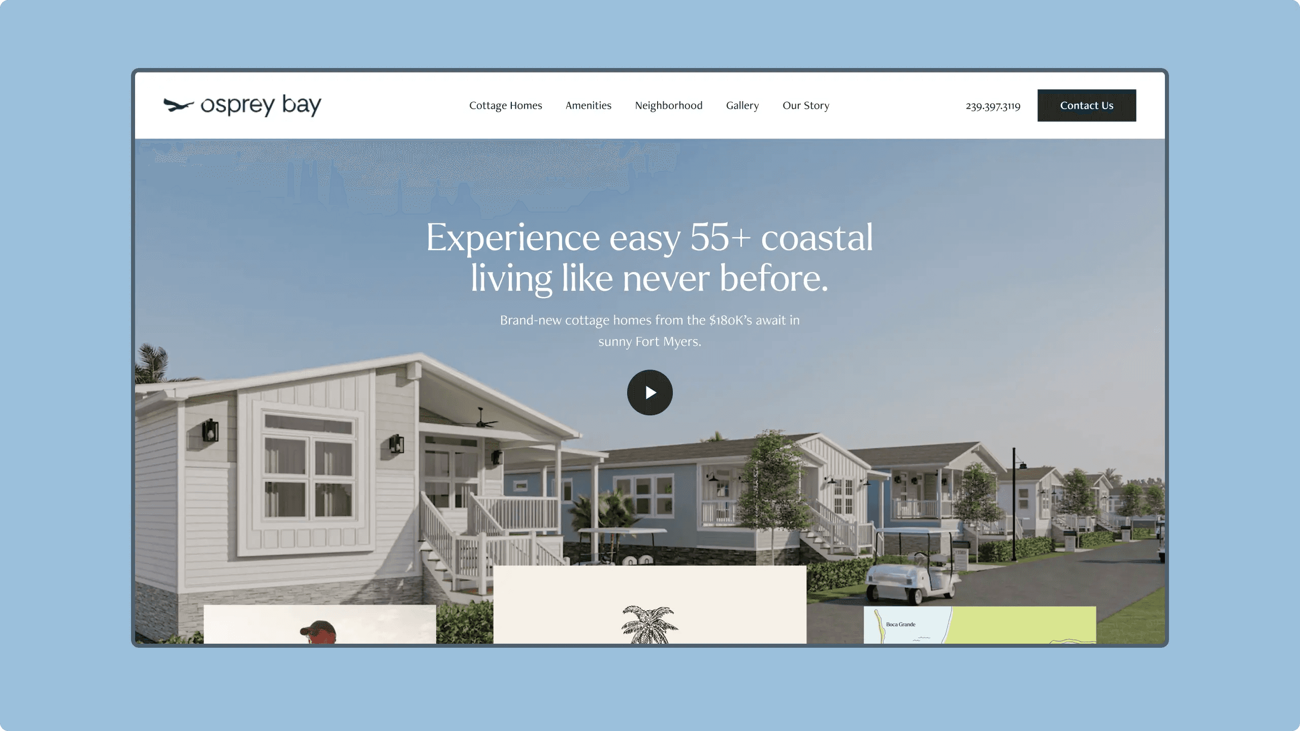 We teamed up with Osprey Bay to craft a website strategy that truly reflects their vibrant 55+ cottage community in Fort Myers. Our mission was to showcase their charming cottages, enticing amenities, and active lifestyle offerings.