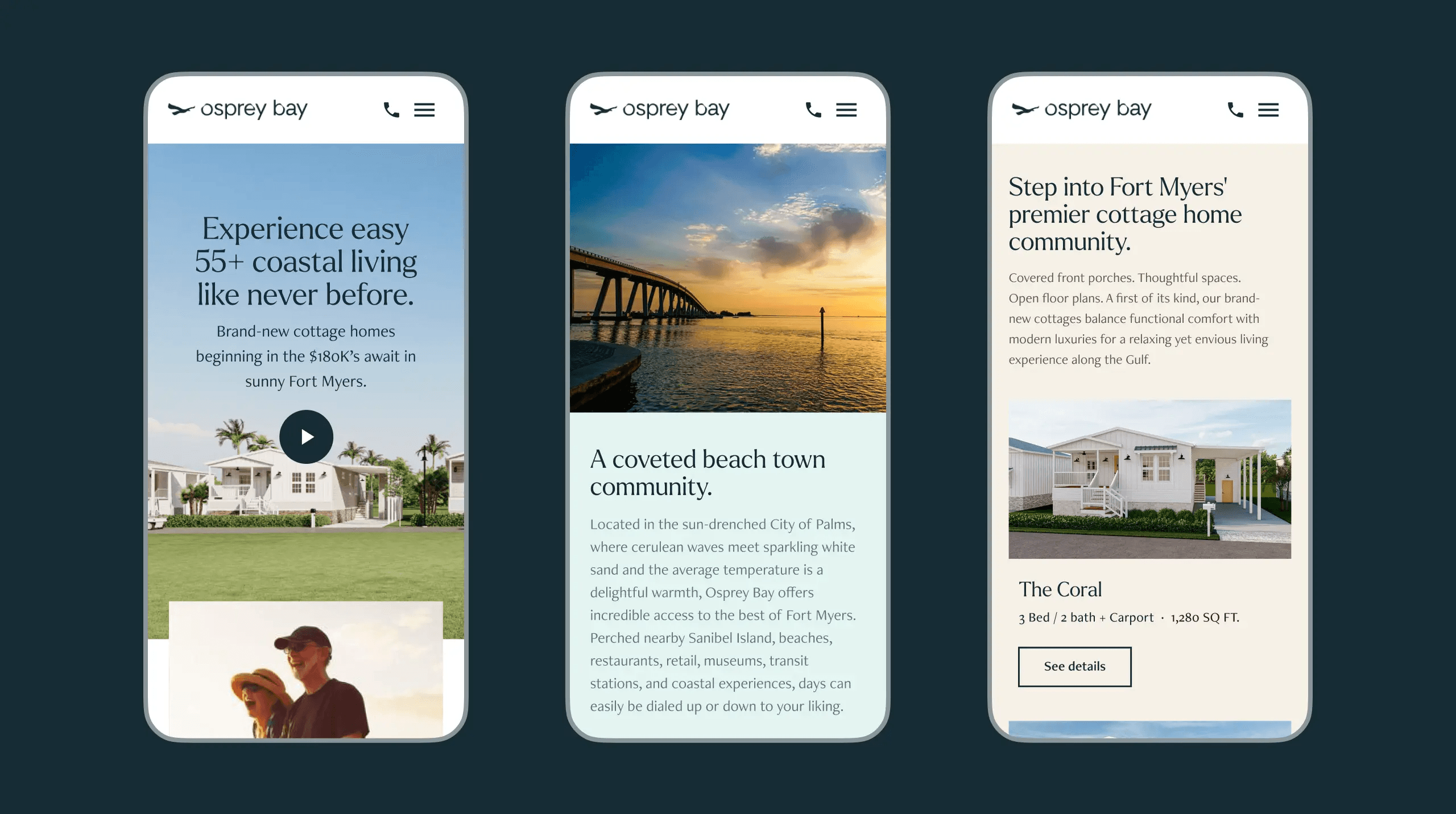 As the community grows and the market landscape shifts, we’re committed to evolving and strategizing alongside Osprey Bay. Our goal is to ensure their online presence continues to meet emerging demands, supporting their ongoing success and expansion.